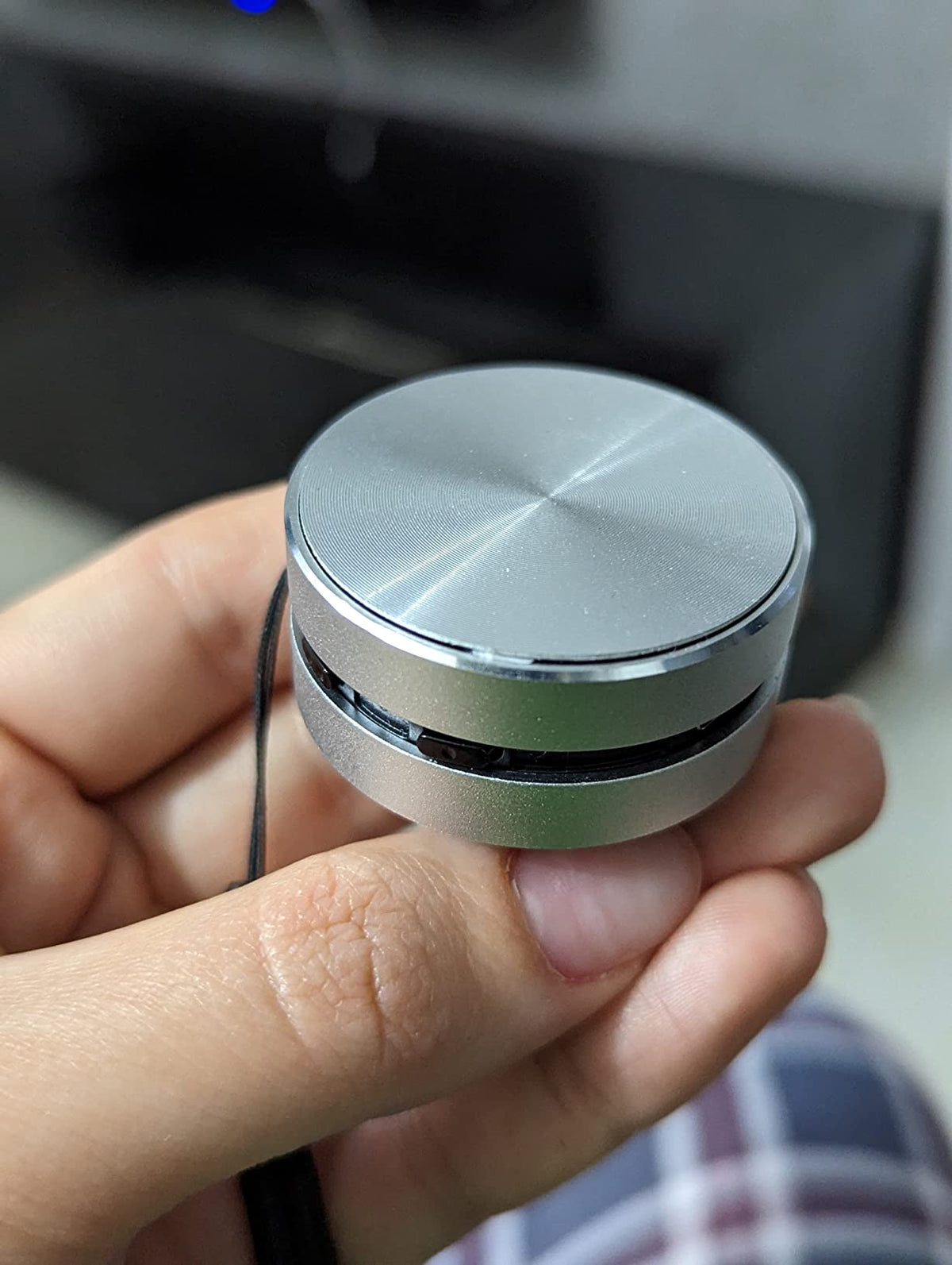 Absolutely! With its compact design measuring just 4x4x2 cm and lightweight construction, this speaker fits easily in your pocket or bag, making it an ideal travel companion for music lovers on the go.